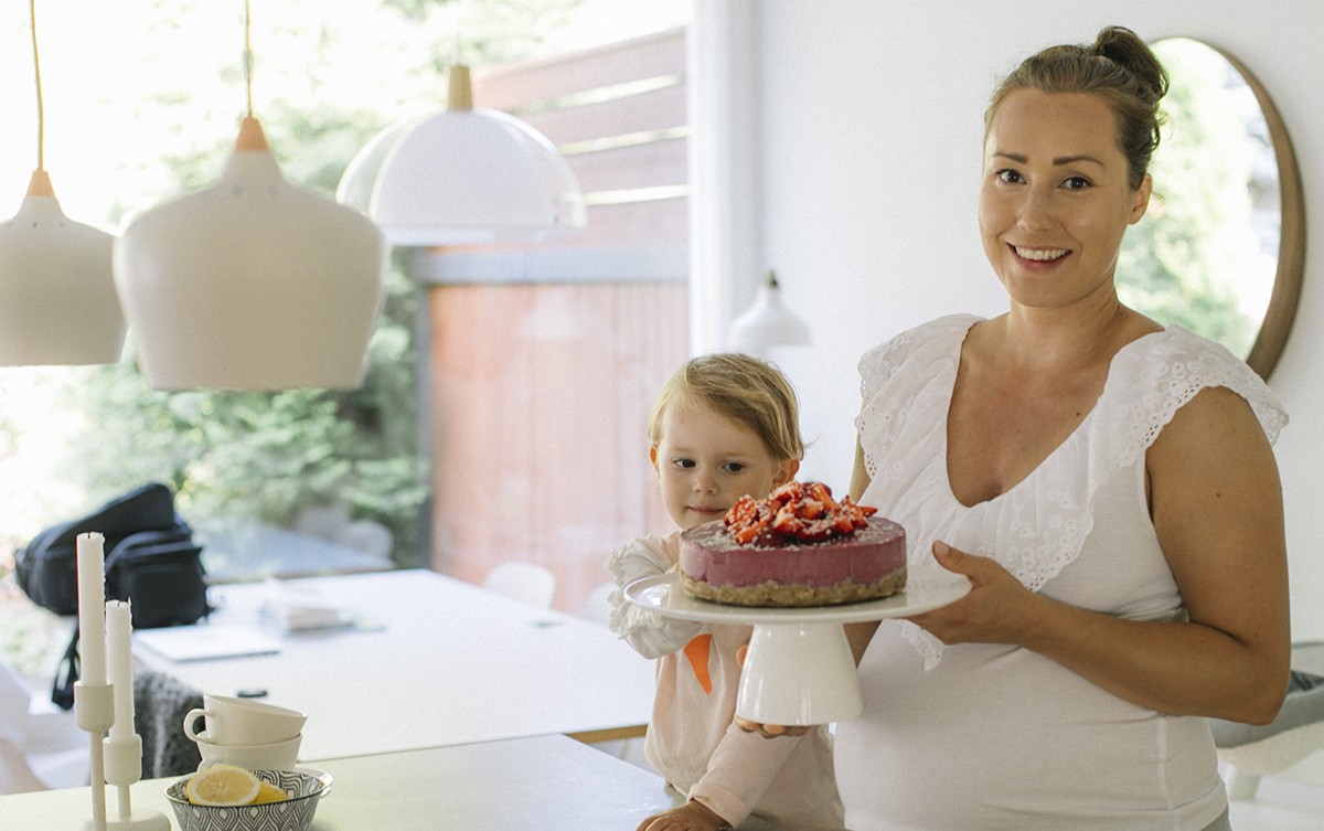 Täytyy tunnustaa, etten ole ollut mikään suuri raakakakkujen fani (olen tainnut maistaa kahviloissa liian monta kertaa kallista raakakakkupalaa, joka ei ole oikeen ollut oman suun mukainen), mutta tämän kakun maku sopi minunkin suuhuni. Mukava kakku siinäkin mielessä, että lapselle voi hyvällä mielellä tarjota isommankin palan, koska raaka-aineet ovat luonnollisia ja vitamiinejakin tämän kakun sisältöön mahtuu rutkasti. Ja hyvä juttuhan se on meille isommillekin. :)